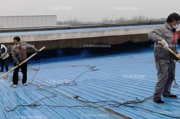 1、清理金属屋面残留的垃圾、表面的灰尘和杂物。清理后,进行第一遍精细化打磨,采用电动砂轮机式钢丝刷,将原先脱落的漆膜打磨干净直至见到原锈蚀层。