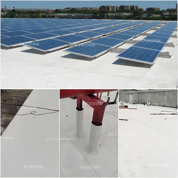莫艺创能高分子防水系统,凭借其严谨的技术研发、稳定的性能表现以及卓越的效果展示,为工商业厂房光伏屋面提供了理想的防水解决方案。该系统采用了高分子材料,具有极强的弹性和柔性,能够适应金属屋面的各种变形和振动,确保防水层的完整性和持久性。同时,高分子材料还具有良好的抗紫外线、抗老化和抗化学腐蚀性能,能够抵御自然环境中的各种恶劣条件,保持防水效果的长期稳定。